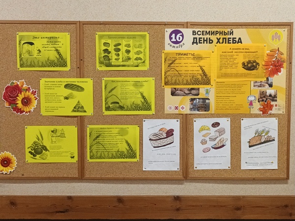 16 октября 2025 года в начальной школе Гимназии ко Дню хлеба оформили информационные стенды с историей праздника, загадками, фотографиями.